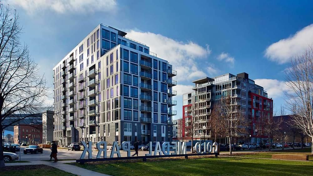 A 24/7 fitness center features circuit and resistance training areas to be enhanced by Corp’s Pumped Fitness program, which includes free group fitness classes and discounted personal training and nutrition counseling. Exterior amenities include a leash-free dog park and an expansive courtyard and pocket park, as well as a resort-style pool area with grilling stations and a fire pit.